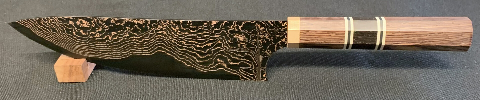 I make knives fron Stainless Steel and Damascus and San Mai. All Damascus, including STAINLESS DAMASCUS, is made in my forge.